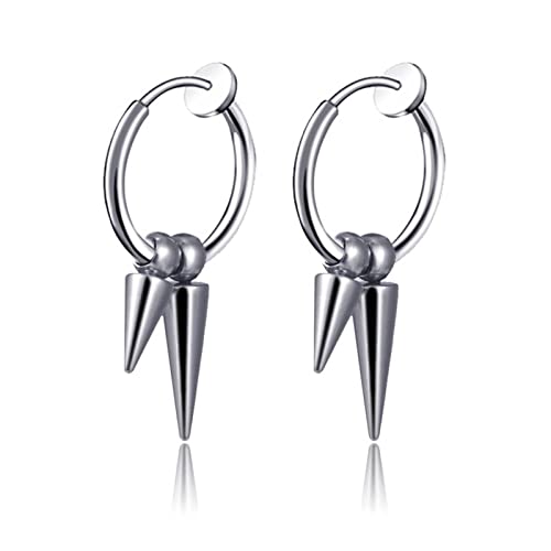 Boucle D'Oreille Homme Inox, Boucle Doreille Argent avec Pendentif Cône Clip Boucle D'Oreille Créole Pendantes Piercing Cartilage Oreille