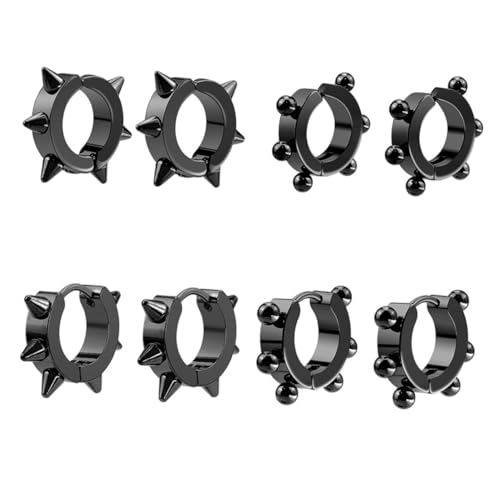 LEEQ Non Piercing Boucles d'oreille - Clip d'oreille Faux Anneaux d'oreille pour Hommes/Femmes,Fausse Boucle d'oreille Homme, Boucle d'oreille Homme,Clip d'oreille Bijoux Non Piercing,4 Paires