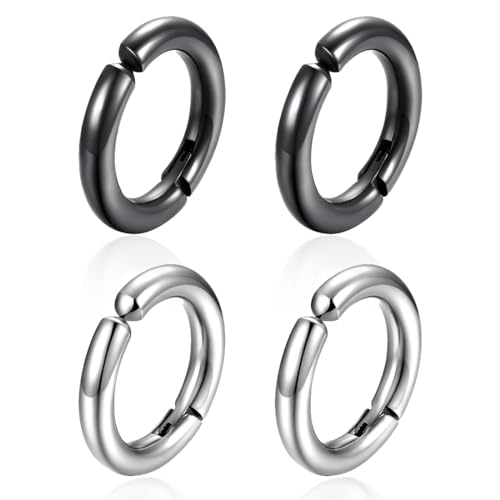 4 Pièces/2 Paires Non-Piercing Boucles d'oreille Clip d'oreille Faux Anneaux d'oreille pour Hommes et Femmes,Boucle d'oreille Homme,Clip Non Piercing, en Acier Inoxydable, 2 Couleurs,10mm