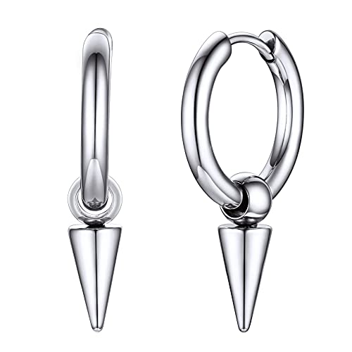 U7 Boucle d'Oreille Homme Pendante Acier Inoxydable Pendeloque Cône Cubique Punk Style