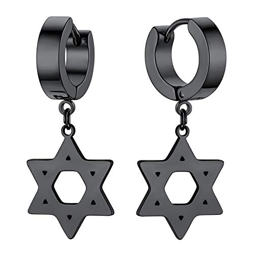 U7 Créole Petite avec Pendante Étoile de David Boucle d'Oreille Homme Noir