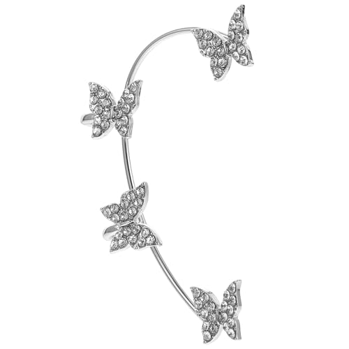 HANABASS Pince à Oreilles Papillonnante sans Piercing Argentée Droite, Boucles D'oreilles sans Trou Décoratives, Accessoire Femme Élégant pour Mariage et Usage Quotidien