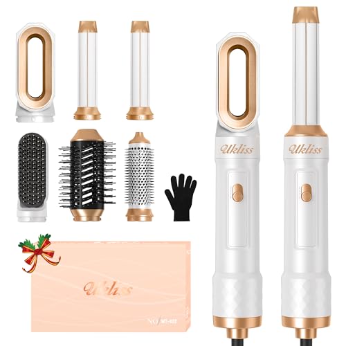 Airstyler 6 en 1, UKLISS Brosse Soufflante Brushing & Sèche Cheveux avec Hair Dryer, Boucleur a Cheveux Automatique, Lisseur cheveux, Airbrush Multistyler Cadeaux Set pour Femmes Styling (Blanc)