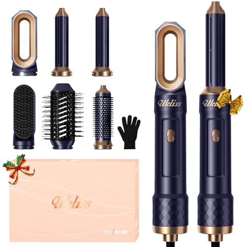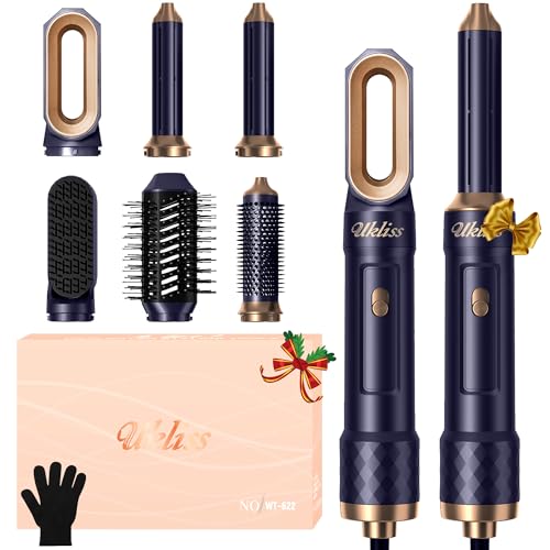 UKLISS Seche Cheveux & Air Styler 6 en 1, Brosse Soufflante Brushing avec Hair Dryer, Auto Boucleur a Air, Brosse Lissante Chauffante, Thermal Brush, Hairstyler Airbrush Cadeaux pour Femmes - Bleu