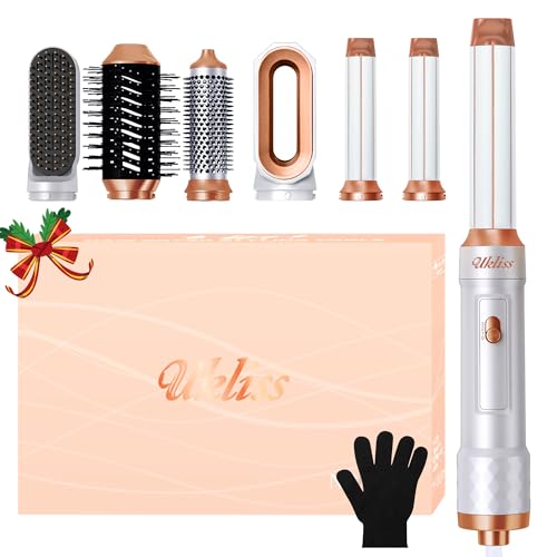 UKLISS Seche Cheveux Professionnel 7 en 1, Brosse Soufflante Air Styler Set avec Auto-Wrap Boucleur a Cheveux, Dffuseur Seche Cheveux, Brosse Chauffante Brushing, Brosse Lissante pour Cheveux
