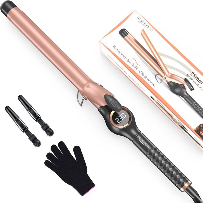 BESTOPE PRO Boucleur a Cheveux 25mm - Fer a Boucler en Céramique Antistatique, Fer À Friser avec Écran LCD 80-230°C, Chauffe Rapide, pour des boucles naturelles et lâches