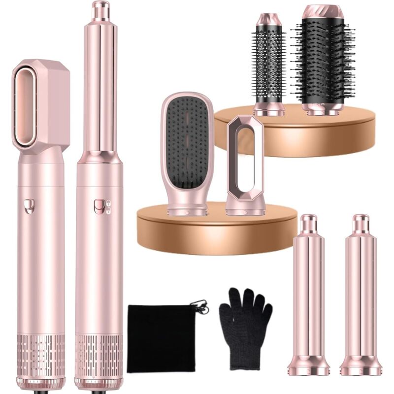 (Multicolore)7 en 1 Sèche Cheveux , Air Styler, d'ions Négatifs Hair Dryer à Haute Vitesse, Avec Brosse Soufflante et Air Boucleur a Cheveux