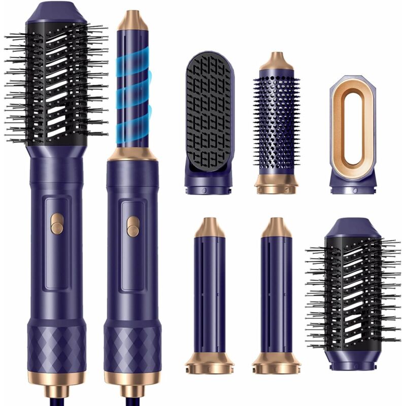 Brosse Soufflante 7 en 1, Air Styler avec Soufflantes, Diffuseur, Buse de Coiffage, Sèche-Cheveux à Ions Négatifs Haute Vitesse, Boucleur a Air, Hair