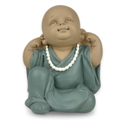Statue Bouddha Bonze Rébelion Position Iconique - Ne Rien Entendre - Bébé Bouddha Symbolique -Ambiance Zen et Relaxante - Décoration Feng Shui - Idée Cadeau Toute Occasion -H 10,5 cm – Zen’Light