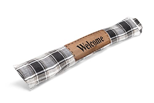 Sweet Home - Boudin rembourré pour Portes et fenêtres, diamètre 10 cm, Longueur 80 cm, Tissu Polyester, Tartan Blanc/Noir/Beige, décoration de Patch Welcome
