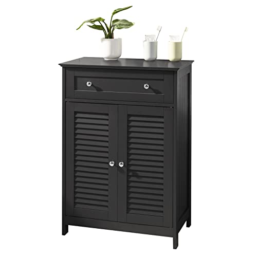SoBuy Meuble Bas de Salle de Bain – Commode pour Salle de Bain, Armoire de Rangement avec étagère réglable, 1 Tiroir et 2 Portes, pour Le Couloir et la Cuisine, Gris foncé, 60 x 35 x 87 cm, FRG238-DG