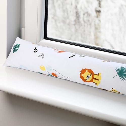 Boudin de Porte Isolant Froid 90 cm – Bas de Porte et fenêtre Coupe-Vent décoratif Idéal pour entrée Maison fenêtres et Coussin pour Chambre Enfant Coton Oeko-tex Safari