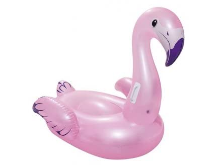 Flamant Rose Gonflable a chevaucher 127x127cm - Matelas bouee Animal XL - Flotteur Enfant 45 kg Max - Set Piscine + 1 Carte
