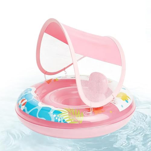 Bouee Bebe, Bouee Bebe avec Pare Soleil SPF 50+, Bouée Enfant Piscine Bouee, Bouée Gonflable pour Enfants Anneau de Natation Bouée Bébé Piscine pour Enfants de 6 à 36 Mois (Rose)