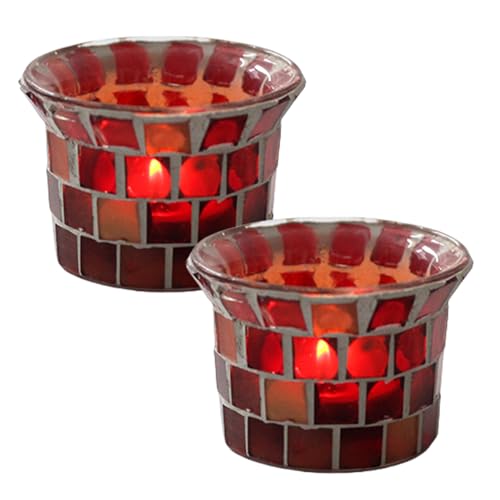 Pasdrucn 2Pcs Mosaïque Photophore Bougie Décoration De Maison, 6x6x4.5cm Bougeoir en Verre Coloré Bougeoir Verre Pied, Photophore Bougeoir en Verre Coloré (Rouge)