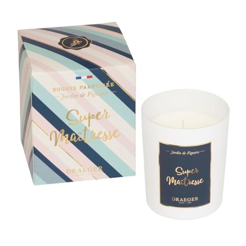 DRAEGER PARIS - Bougie Cadeau blanche Parfumée Jardin de figuiers - Idée Cadeau fin d'année, école, maternelle, remerciement - Made in France - 100% Cire Végétale - 40h de combustion