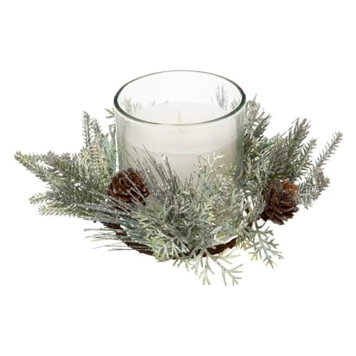 Feeric Christmas - Bougie Blanche parfumée Centre de Table Pot en Verre avec déco Feuillage 210 G