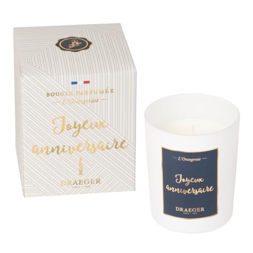 DRAEGER PARIS 1886 - Bougie Cadeau Blanche Parfumée Fleur d'oranger "Joyeux Anniversaire" - Idée Cadeau d'Anniversaire Original - Pot en verre - Made in France - 100% Cire Végétale - 40h de combustion