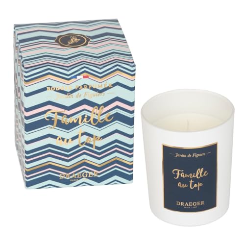DRAEGER PARIS - Bougie Cadeau blanche Parfumée Jardin de figuiers "Famille au Top" - Idée Cadeau Amour Famille, Frères et sœurs - Made in France - 100% Cire Végétale - 40h de combustion