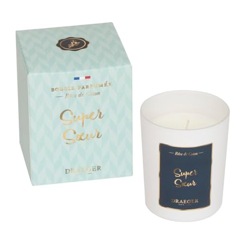 DRAEGER PARIS - Bougie Cadeau blanche Parfumée Rêve de coton "Super Soeur" - Idée Cadeau Famille, Sœur de coeur, Amitié, Meilleure amie - Made in France - 100% Cire Végétale - 40h de combustion