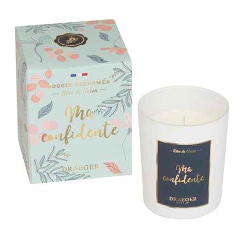 DRAEGER PARIS - Bougie Cadeau blanche Parfumée Rêve de coton "Ma Confidente" - Idée Cadeau Amitié, Confidente, Anniversaire - Made in France - 100% Cire Végétale - 40h de combustion