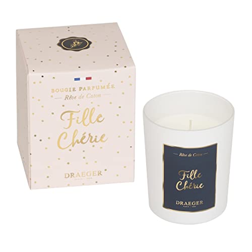 DRAEGER PARIS - Bougie Cadeau blanche Parfumée Rêve de coton "Fille chérie" - Idée Cadeau Anniversaire, Fille, Enfant - Pot en verre - Made in France - 100% Cire Végétale - 40h de combustion