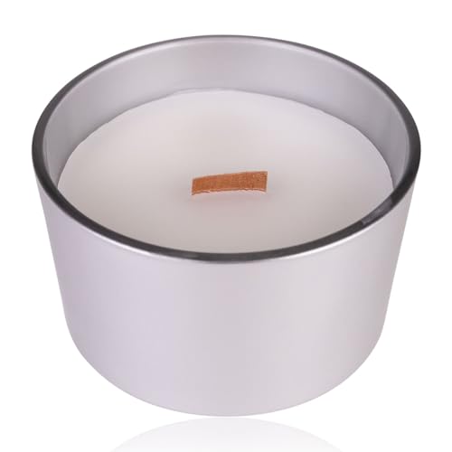 Bougie parfumée Accentra dans un verre rond avec une mèche en bois, 440g, couleur : argent, parfum : Coton, bougie décorative Noël, cadeau pour femme