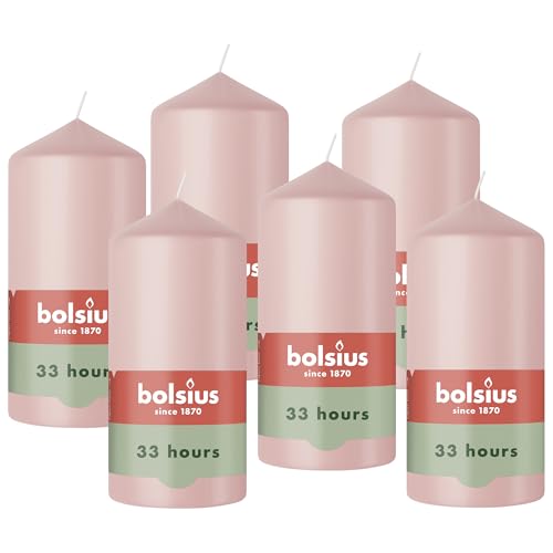 Bolsius - Essentials - Bougie Pilier - Pastel Rose- 15cm - 6 Pièces - Bougie Décorative - Contient Cire Végétale Naturelle - sans Huile de Palme