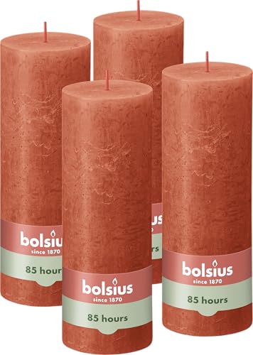 Bolsius - Bougie pilier rustique - Orange - 19 x 7 cm - 4 pièces - Durée de combustion de 85 heures - Sans parfum - Cire végétale naturelle - Sans huile de palme