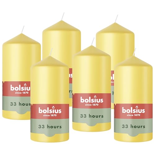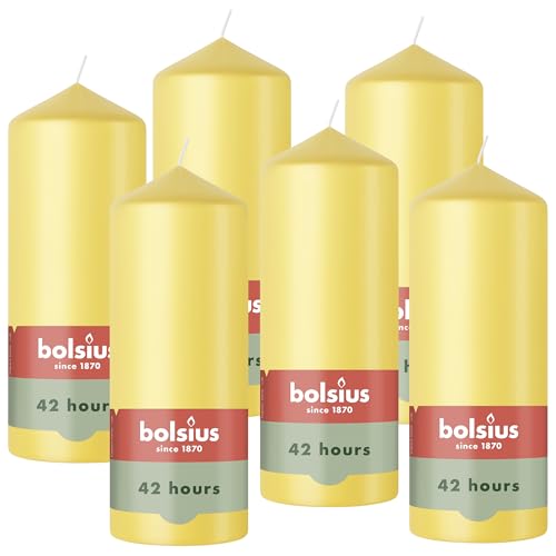 Bolsius - Essentials - Bougie Pilier - Jaune Frais - 15cm - 6 Pièces - Bougie Décorative - Contient Cire Végétale Naturelle - sans Huile de Palme