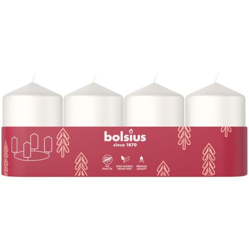 Bolsius - Avent- Bougie Pilier - Blanc - 6cm - 4-pack - Bougies Décoratives - Contient Cire Végétale Naturelle - sans Huile de Palme - Noël