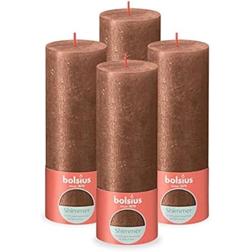 Bolsius Lot de 4 bougies pilier rustiques - Cuivre scintillant - Longue durée de combustion de 85 heures - Bougie de maison - Décoration d'intérieur - Sans parfum - Avec cire naturelle végétalienne -