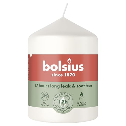 Bolsius - Bougie pilier lisse - Blanc - 8 x 5,8 cm - Non parfumée - Cire végétale naturelle - Sans huile de palme