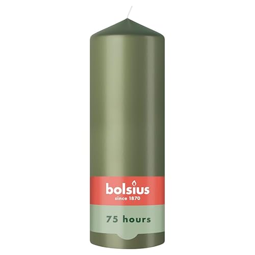 Bolsius - Essentials - Bougie Pilier - Vert Olive - 8cm - 6 Pièces - Bougie Décorative - Contient Cire Végétale Naturelle - sans Huile de Palme