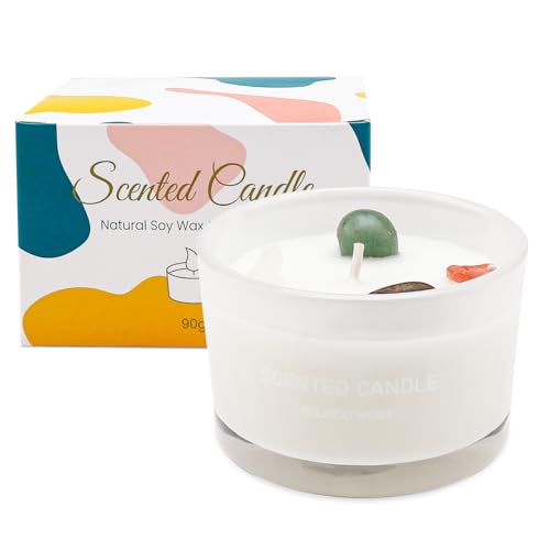 ALLAVA Bougie parfumée à la vanille avec pierre de cristal, bougie en cire de soja naturelle faite à la main, jusqu'à 20 heures de combustion (vanille, 270 g)