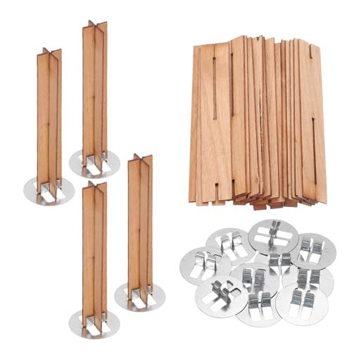 QUARKZMAN 10 Set Mèches de Bougie en Bois, 0.5 X 3.2 inch Mèches en Bois Naturel avec Support en Forme de Croix Cores de Bougie Fournitures avec Flamme Crépitante