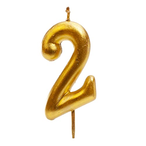 Dekora - Bougies Anniversaire Originales | Bougie Anniversaire Numéro 2 | Bougie d'Anniversaire Dorée