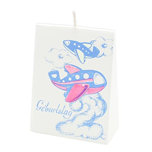 Dekohelden24 Bougie d'anniversaire de qualité supérieure pour 2ème anniversaire Motif avion fait main et peinte à la main 9 x 5 x 12 cm