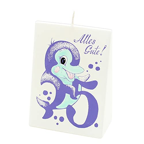 Dekohelden24 Bougie d'anniversaire 5ème anniversaire de qualité supérieure Motif dauphin fait à la main et peinte à la main 9 x 5 x 12 cm