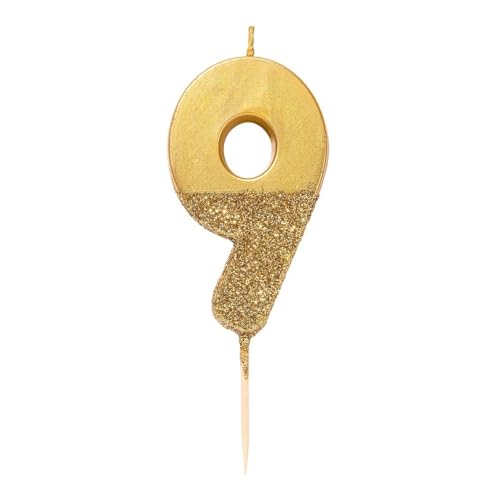 Dekora - Bougies Anniversaire Originales | Bougie Anniversaire Numéro 9 | Bougie d'Anniversaire Dorée