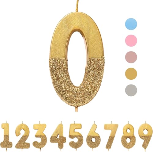 Bougie d'anniversaire numéro 0 dorée avec paillettes | Décoration de gâteau de qualité supérieure | Jolie, scintillante pour enfants, adultes, 10e, 20e, 50e, 80e fête, anniversaire, âge jalon