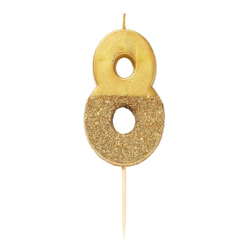 Bougie d'anniversaire numéro 8 dorée avec paillettes | Décoration de gâteau de qualité supérieure | Jolie, scintillante pour enfants, adultes, 8e, 18e fête, anniversaire, âge jalon