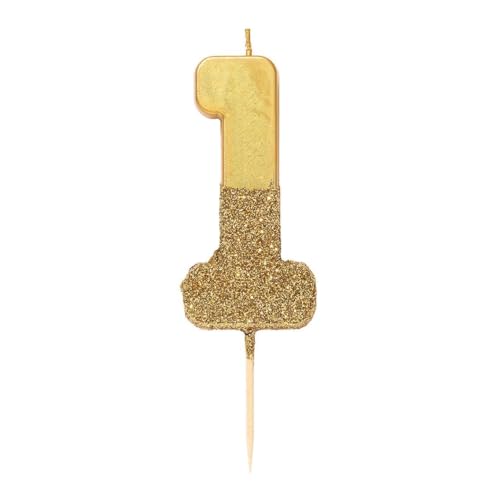 Bougie d'anniversaire numéro 1 dorée avec paillettes | Décoration de gâteau de qualité supérieure | Jolie, scintillante pour enfants, adultes, 1ère, 18e, 21e fête, anniversaire, âge jalon