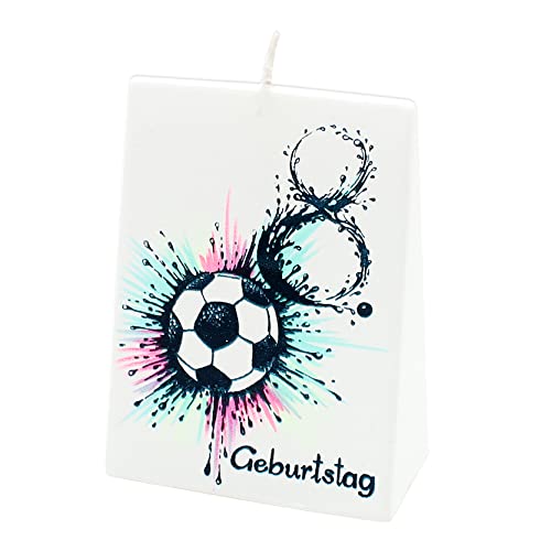 Dekohelden24 Bougie d'anniversaire de 8e anniversaire de qualité supérieure Motif football fait main et peinte à la main 9 x 5 x 12 cm