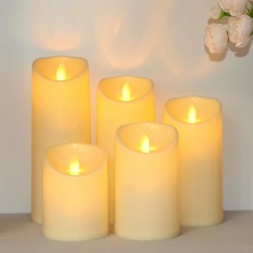 Auralome Bougies LED Sans Flamme - Bougie Extérieure Étanche Lot De 5 Fausse Bougies de Batterie Fonction Minuterie LED Exterieur Grande Bougies à Piles avec Télécommande Noël Decoration Room Decor