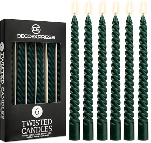 DECO EXPRESS Bougies Torsadées Lot de 6, Anti-Gouttes et Sans Parfum, Bougie Longue Durée 6h, Saint Valentin et Fetes des Mères Decoration Maison, Idee Cadeau (Vert, Lot de 6)