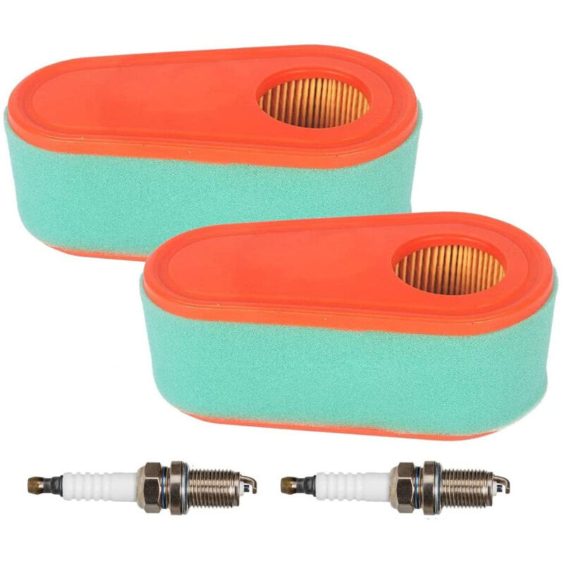 Lot de 2 filtres à air avec bougie d'allumage pour tondeuses à gazon Briggs & Stratton (références 798452 et 593260) et Oregon 30-168 Rotary (référence 14364).