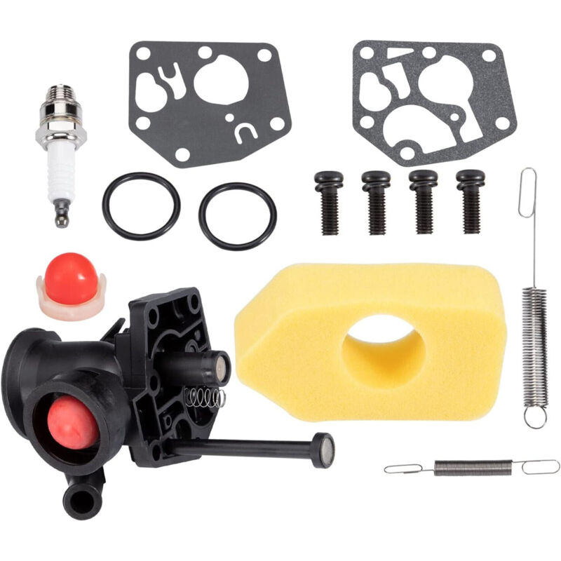 Kit de carburateur pour tondeuse à gazon Briggs & Stratton avec filtre à air, vis, régulateur, ressort, membrane, pompe à essence et bougie