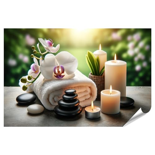 islandburner Poster XXL Relaxation au Spa avec bougies et orchidées, studio de massage thaïlandais, photos de qualité supérieure