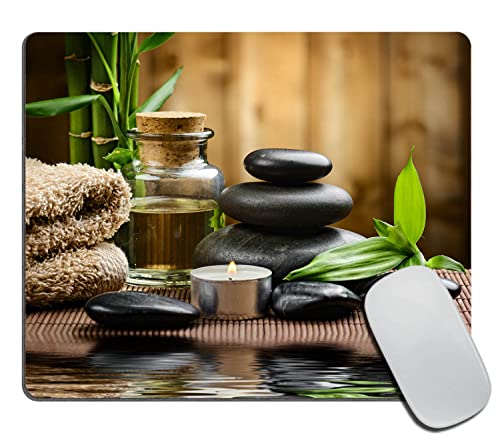 Tapis De Souris Pierres De Massage De Spa, Trios D'Huiles Essentielles Et Bougies Parfumées (Impression) 25X30Cm Douce Tapis Souris Durable Mouse Pad pour Maison Bureau